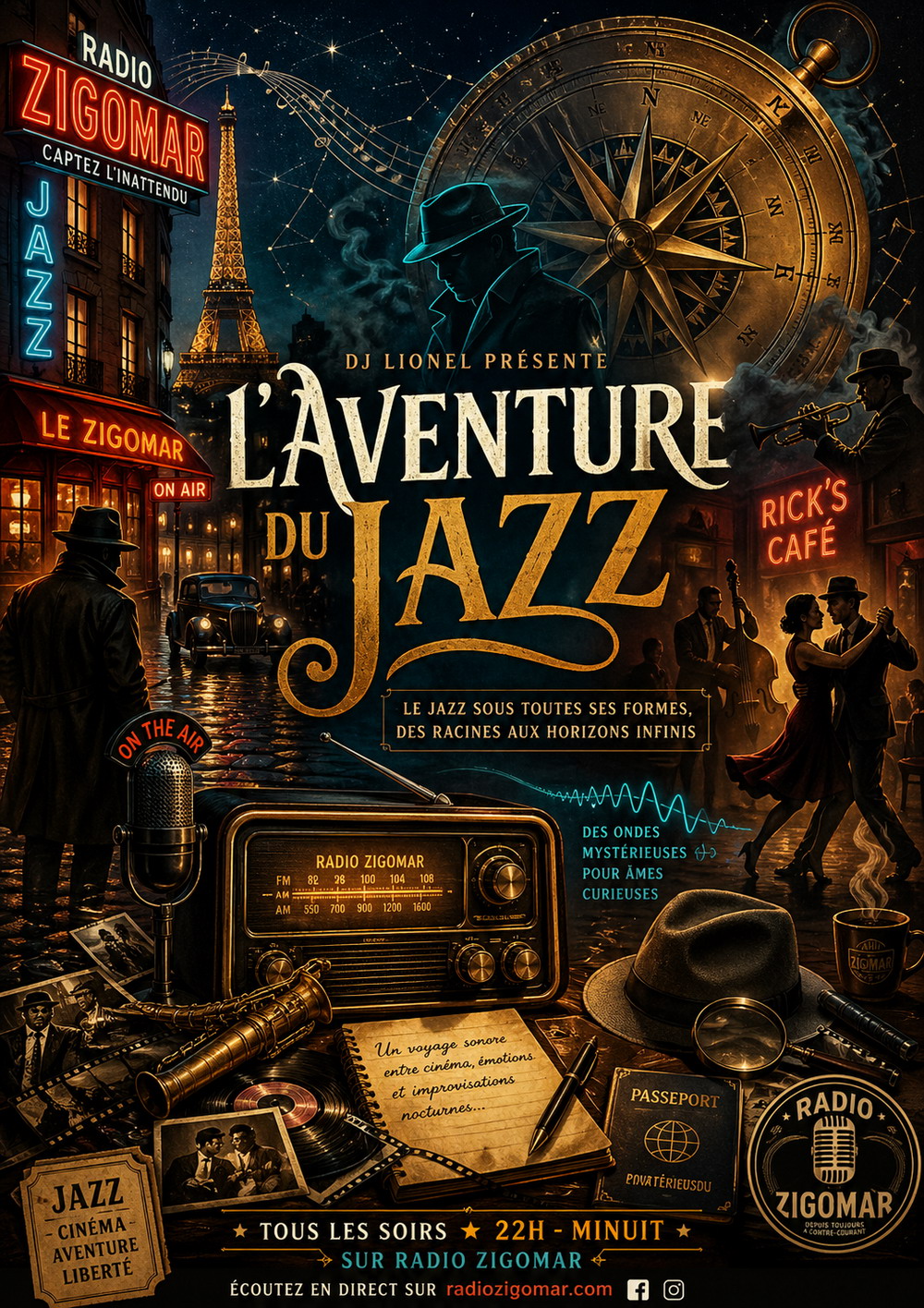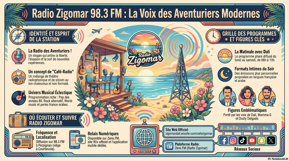 Radio Zigomar est une radio immersive mêlant fiction, musique et divertissement dans un univers unique inspiré des quartiers populaires, des récits d’aventure et des cultures du monde. À travers une programmation éclectique, elle propose des émissions narratives, des chroniques humoristiques, des fictions radiophoniques et des sélections musicales allant du jazz à la world music, en passant par des ambiances rétro et underground. Portée par des personnages forts et des voix incarnées, la radio crée une véritable expérience sonore où chaque programme raconte une histoire. De “L’Aventure du Jazz” aux chroniques décalées du Quartier Zigomar, en passant par des collaborations internationales comme Bombay FM, chaque rendez-vous transporte l’auditeur dans un voyage sonore original. Radio Zigomar s’adresse aux auditeurs curieux, amateurs d’histoires, de musique et d’univers créatifs, avec une approche moderne du storytelling audio.